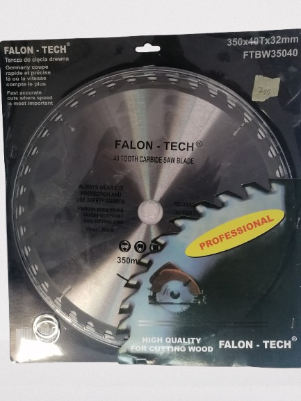 Rezna ploča za drvo,tungsten-karbid,kvalitetna ,proizvođač Falon-tech,dimenzije 350mm,40zuba,osovina 32mm, sa redukcijskim prstenima.